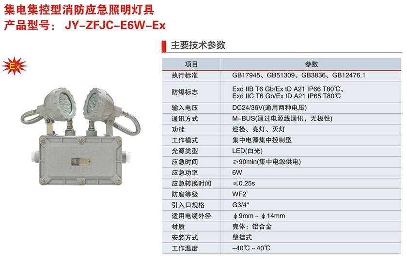 JY-ZFJC-E6W-Ex系列集電集控型消防應急照明燈具